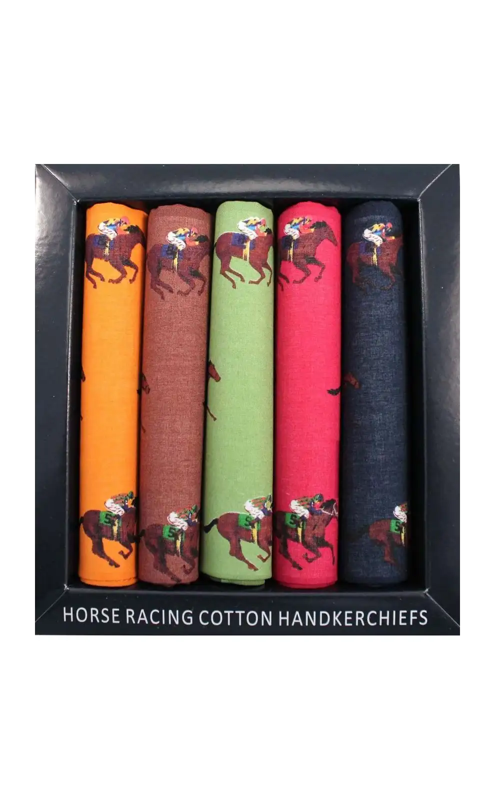 Five Pack Multi Coloured Horse Racing Themed Cotton Hankies