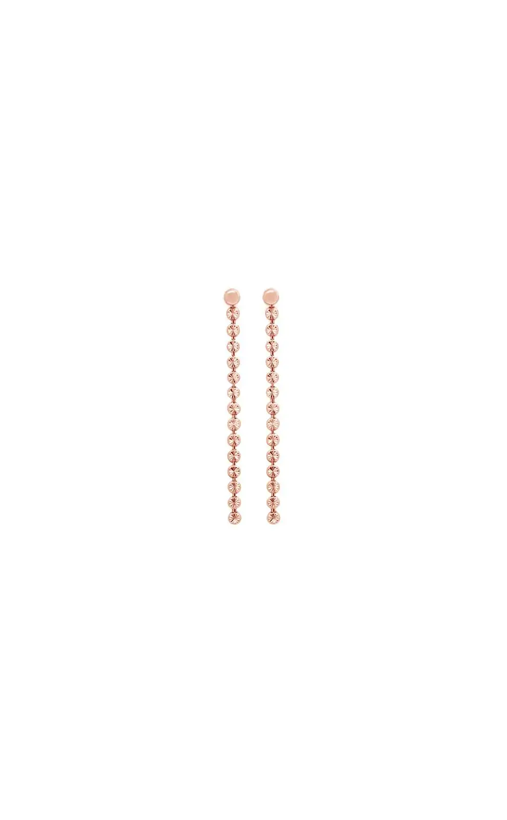 Intricately hand crafted, each bead has been diamond cut and strung on a flexible silver chain to create the perfect earring with sparkle. Wear alone or with another item from our Moondust collection for a completed look. Made from Sterling silver and plated with 18 carat rose gold.