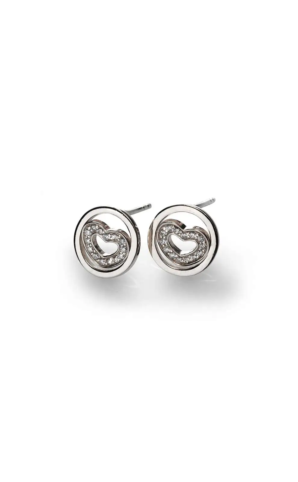 These stud earrings are completed with a rotating heart feature. Perfect for everyday.