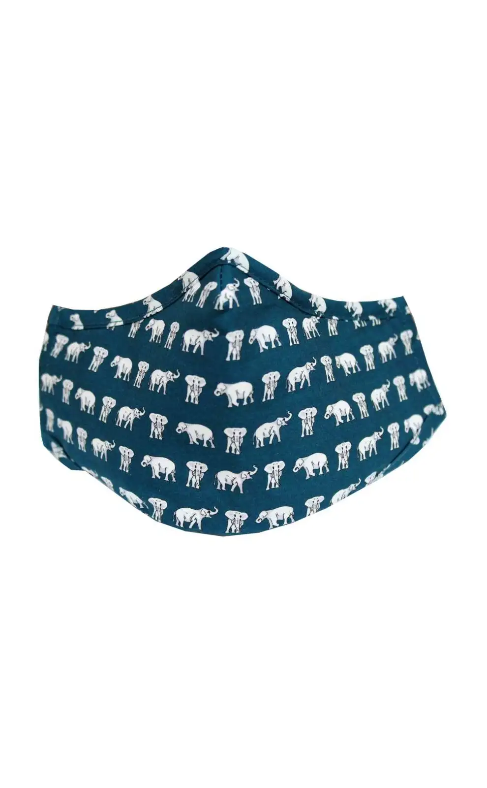 - Navy Elepahants 100% Cotton Washable And Reusable Face Mask Supplied With One 5 Layer Filter