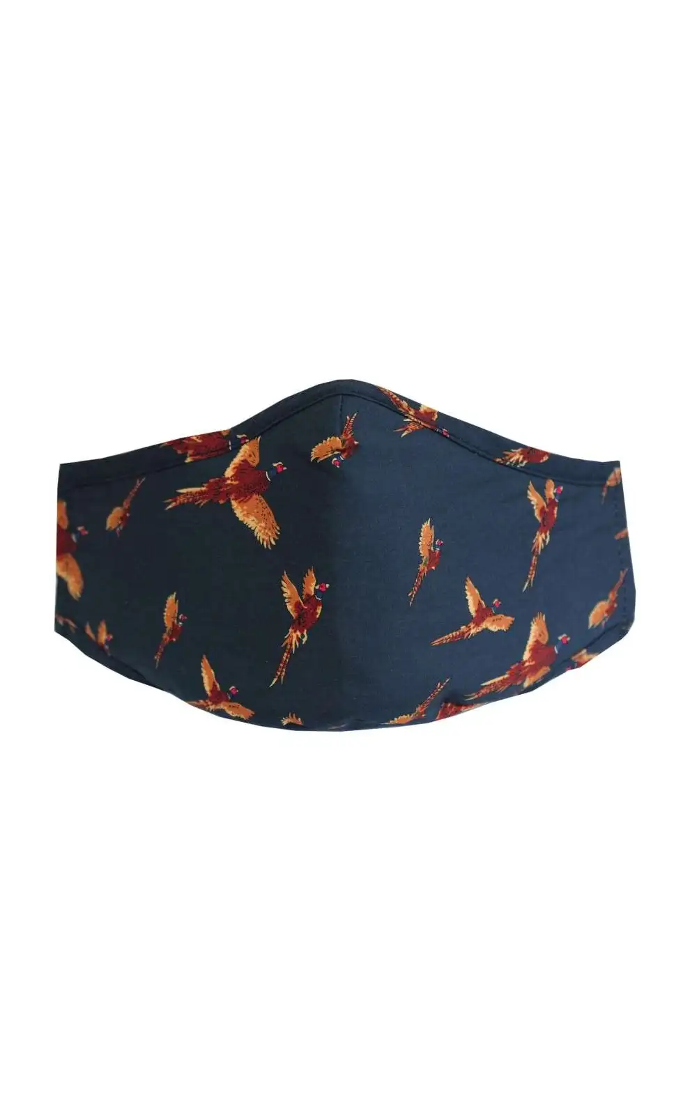 - Navy Flying-Pheasants 100% Cotton Washable And Reusable Face Mask Supplied With One 5 Layer Filter
