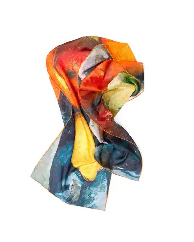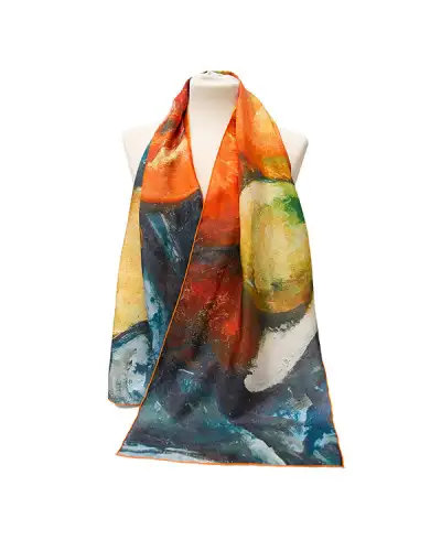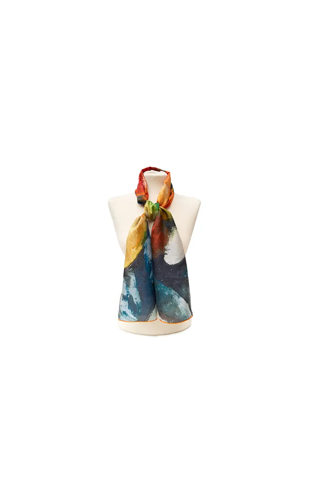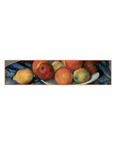 DESIGNER'S NOTES A Fox & Chave silk habotai scarf featuring an element from the work Fruit and Jug on a Table (c.1890-94) by the French painter Paul Cézanne. Cezanne spent much of his life in Provence in the south of France, appreciating it for its peace and calm, but sent paintings to the capital to be featured in exhibits and to be sold. He once said, “ I want to astonish Paris with an apple ,” and spoke of his fascination with painting fruits: “ They love having their portraits done. They sit there as if demanding pardon for changing colour. They come to you in all their perfume, speaking of the fields they have left, the rain that has nourished them, the sunrises they have seen .” This work was a fitting example of this in action and was first sold to Ambroise Vollard in Paris on November 26, 1895. COLOURS STYLING A Fox & Chave habotai silk scarf can be worn with the classic knot style or a pussycat bow. You can even create a shawl effect by knotting two scarves together behind your neck and allowing them to drape over your shoulders. More scarf styling ideas are available in this wonderful How to Tie a Scarf book. Length: 150 cm Width: 33.5 cm Dry clean only 100% Habotai Silk Hand Rolled Hems