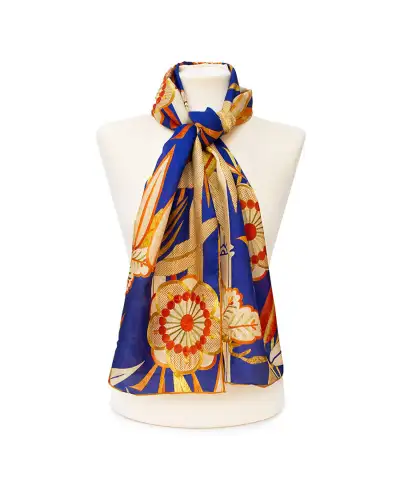 DESIGNER'S NOTES A warm Fox & Chave crêpe de chine silk scarf in shades of burnt orange with navy detail on a cream ground after a design by the Morris Company under the auspices of William Morris (1834-1896) Little is known of the provenance of this design, with a remnant recovered from a now demolished house in Surbiton, in England. Bills found near the paper were dated 1896, making this a design from the very latter part of Morris' life. Several designs from this period were named after rivers, however it is the River Dove that flows through the peak district valley know as Dovedale after which this design is named. A dale is a level or gently sloping ground between low hills with a stream flowing through it. COLOURS STYLING Wear your Fox & Chave crêpe de chine silk scarf in a variety of ways from the French Knot: Fold scarf in half, loop around neck, pull ends through loop, to the Infinity Knot: Loop scarf twice, tie ends in knot. More scarf styling ideas are available in this wonderful How to Tie a Scarf book. Length: 150 cm Width: 34 cm Dry clean only 100% Crêpe de chine silk Hand Rolled Hems