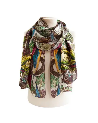 DESIGNER'S NOTES A fascinating Fox & Chave silk chiffon scarf featuring The Scream (1893) by the Norwegian artist Edvard Munch (1863-1944). The alarmed and slightly inhuman face depicted by Munch in The Scream has had a profound social impact, becoming one of the most recognisable symbols of existential angst and human anxiety in modern art. The painting ranks in the top 10 of the most famous images ever painted, along with works like The Mona Lisa by Leonardo Da Vinci, The Starry Night by Van Gogh, The Arnolfini Portrait by Jan Vermeer and The Kiss by Gustav Klimt. It reflects the alienation and inner turmoil of modern life, resonating deeply with audiences who identify with its raw emotion. The artwork transcended its original context, influencing popular culture, psychology, and even marketing. It has been used to represent collective feelings of fear, despair, and anxiety, particularly in the face of societal upheaval. COLOURS STYLING There are many ways to style a Fox & Chave chiffon silk scarf including the basic drape, belted drape and reverse drape. Our chiffon silk scarfs look really good worn in the bandit knot or faux infinity style too. More scarf styling ideas are available in this wonderful How to Tie a Scarf book. Length: 180 cm Width: 52 cm Dry clean only 100% Silk Chiffon Hand Rolled Hems