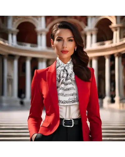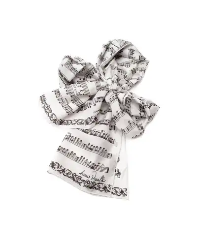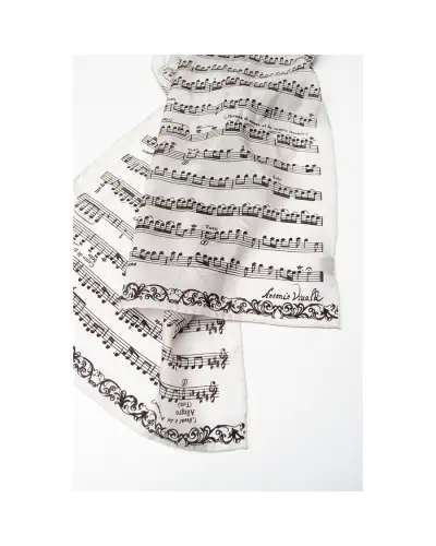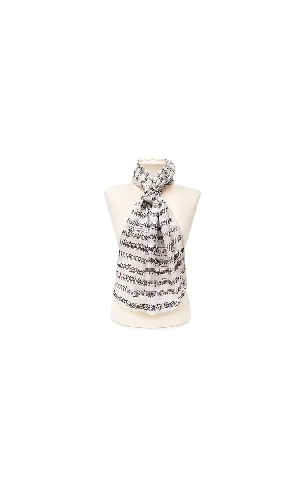 DESIGNER'S NOTES A classical Fox & Chave silk habotai scarf with an off-white design of an actual score for Concerto No. 1 in E major, commonly referred to as Spring, from Le Quattro Stagioni or The Four Seasons by Antonio Vivaldi (1678-1741). At the time of its first performance in the early 18th century, The Four Seasons was well-received, though it was part of a larger collection of twelve concertos, Il cimento dell'armonia e dell'inventione , which gained moderate popularity. Vivaldi's innovative use of vivid musical imagery, representing seasonal scenes like birdsong, storms, and harvests, was groundbreaking. However, his work fell into relative obscurity after his death. It wasn't until the 20th century, with the Baroque revival, that The Four Seasons gained widespread acclaim and became one of the most recognisable and beloved pieces of classical music. Today, it is considered a masterpiece of programmatic music and a cornerstone of the Baroque repertoire. COLOURS STYLING A Fox & Chave habotai silk scarf can be worn with the classic knot style or a pussycat bow. You can even create a shawl effect by knotting two scarves together behind your neck and allowing them to drape over your shoulders. More scarf styling ideas are available in this wonderful How to Tie a Scarf book. Length: 150 cm Width: 33.5 cm Dry clean only 100% Habotai Silk Hand Rolled Hems