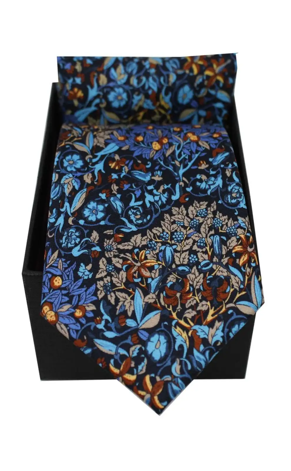 Posh and Dandy Multi Coloured Floral Tie Pocket Square Gift Set