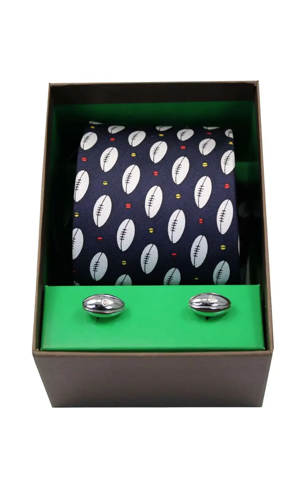 - Rugby Themed Tie And Cufflink Set In a Lovely Gift Box With Lid