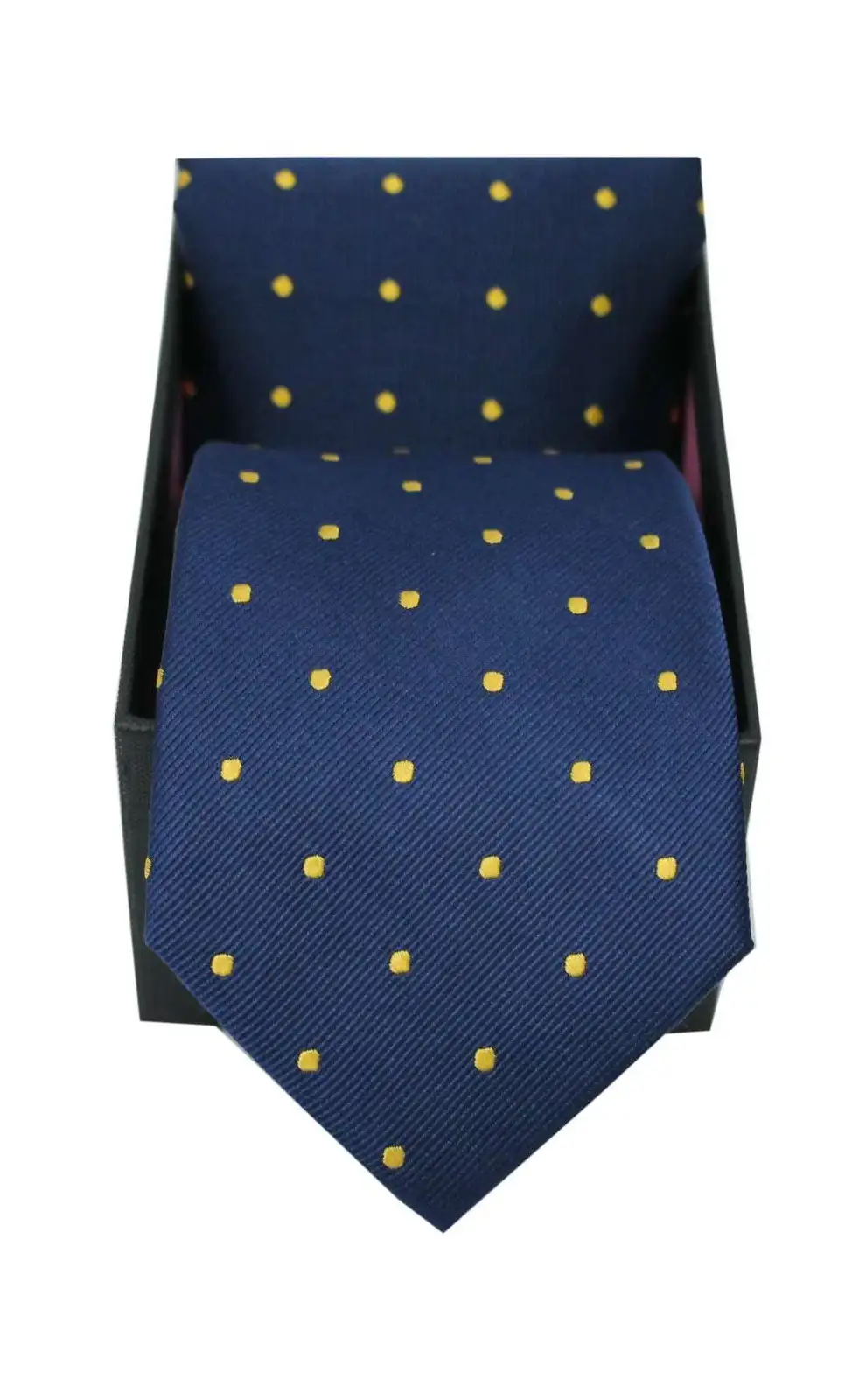 - Soprano Navy & Gold Polka Dot Silk Tie & Pocket Square Set In A Gift Box