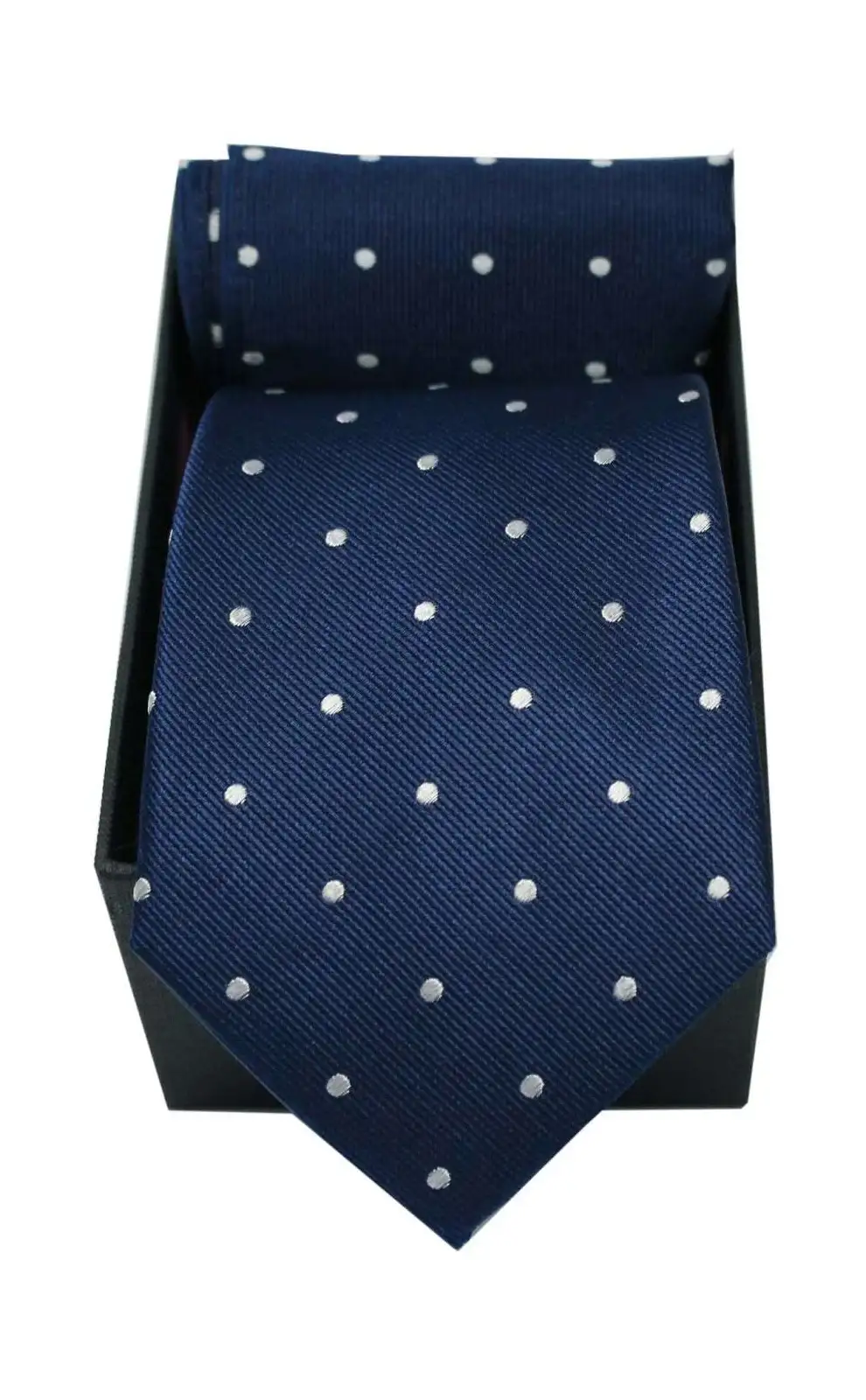 - Soprano Navy & White Polka Dot Silk Tie & Pocket Square Set In A Gift Box