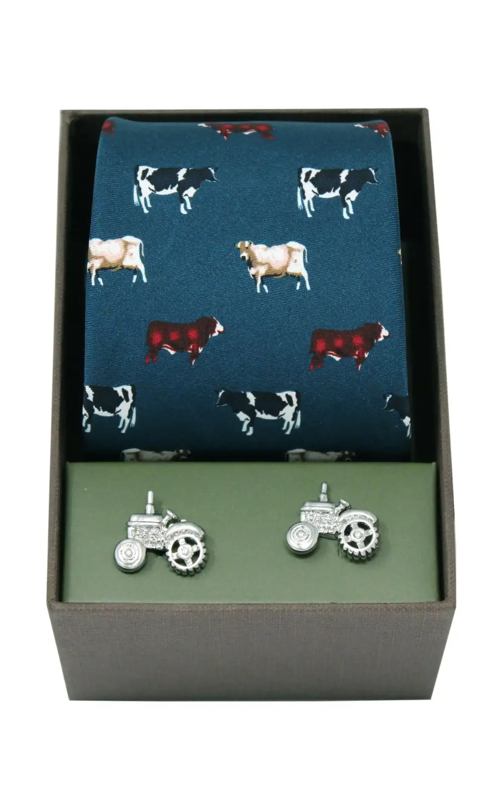 - Soprano Navy Breed Of Cows Silk Tie Cufflink Gift Set In A Box With Lid
