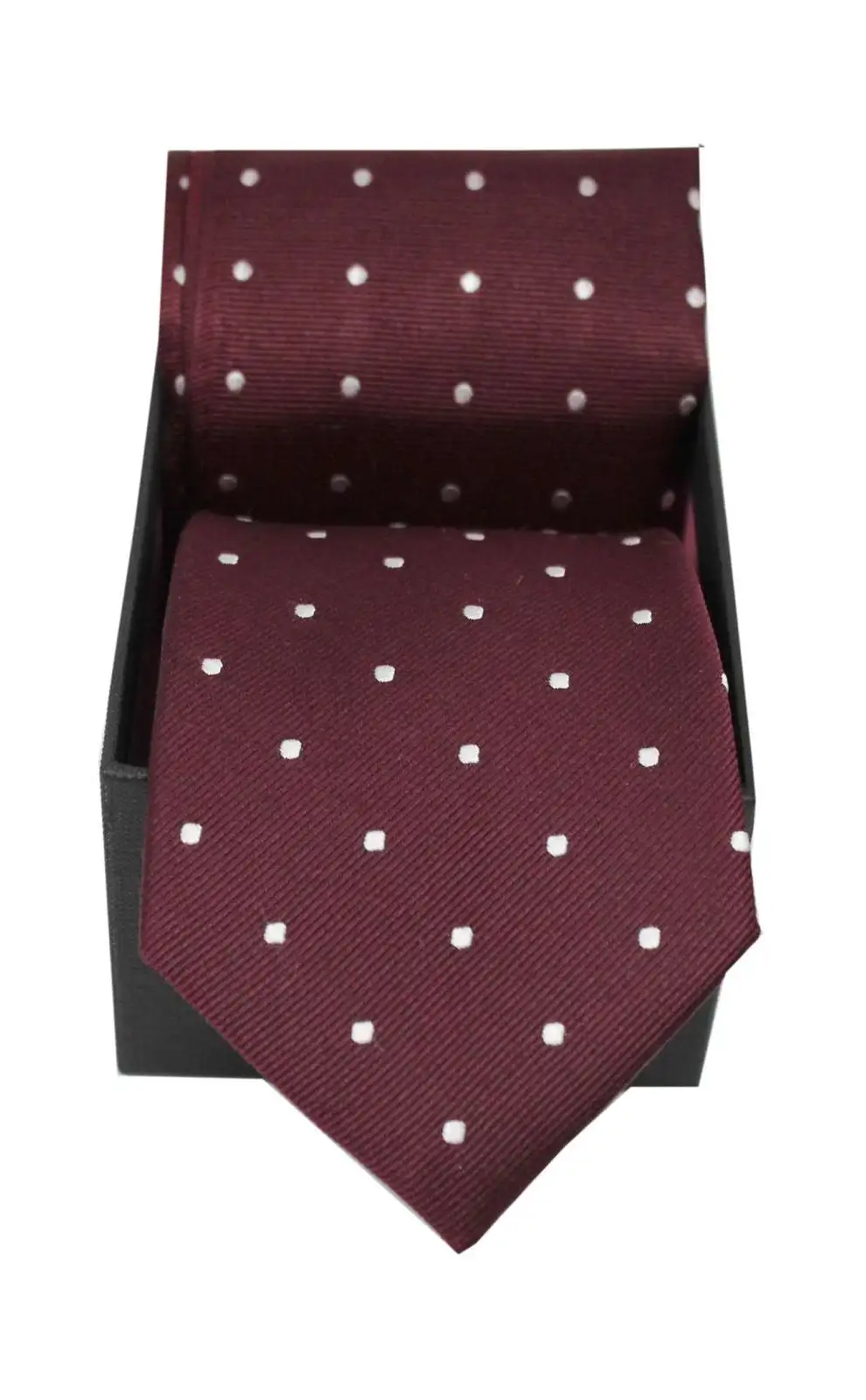- Soprano Wine Polka Dot Silk Tie & Pocket Square Set In A Gift Box