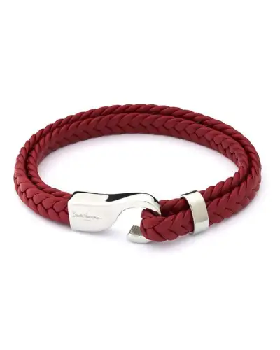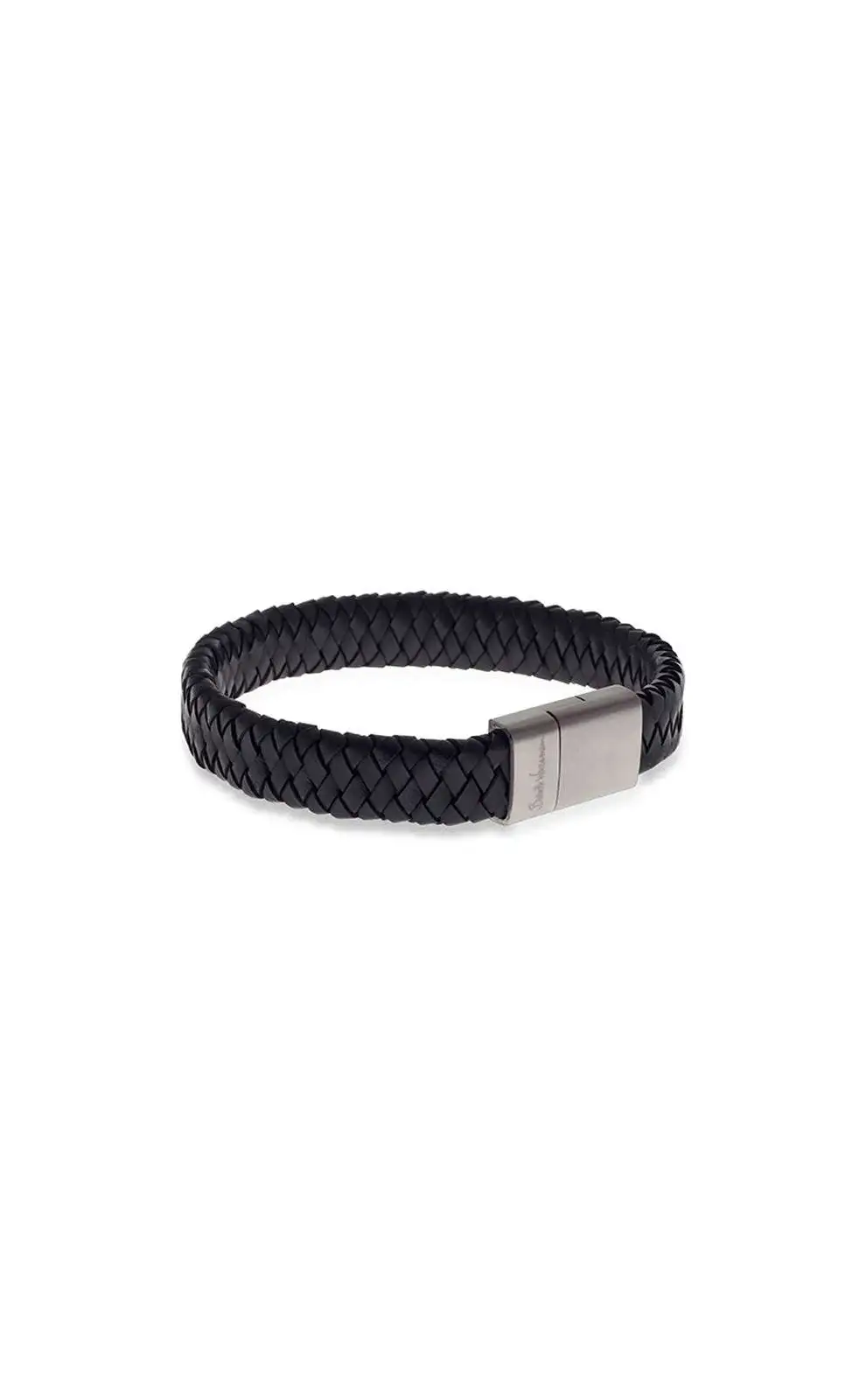 Flat Italian high quality leather woven into a men's bracelet with a matt steel clasp that shuts with a strong magnet. The bracelet's width is 1.4cm. Also available in brown.