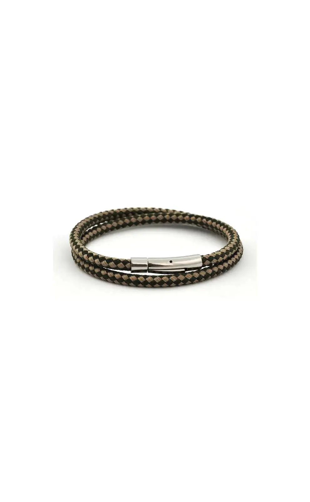This khaki bracelet for perfect for everyday wear. It features a push release clasp is made from high quality steel and made in Italy. Created with hard wearing Italian cord in khaki and sand colours woven together. Choose from a fun mix of fashionable colours.