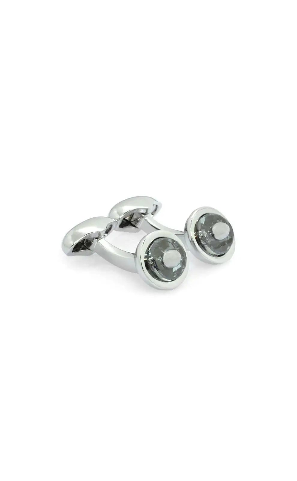 Set with Swarovski Elements, these modern cufflinks are designed with a 'button-like' appearance, adding a stylish statement to men's attire