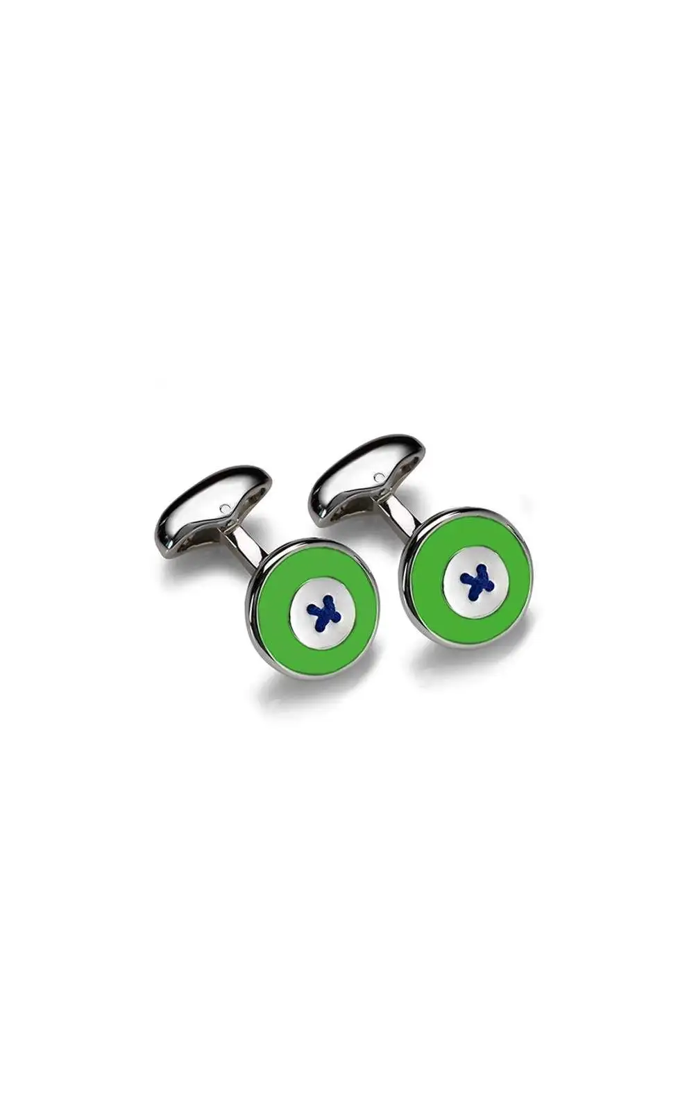 Enamelled Green pop-coloured button cufflinks have real thread sewn in the centre for an authentic and fun look. The perfect mix of quirky and cool!