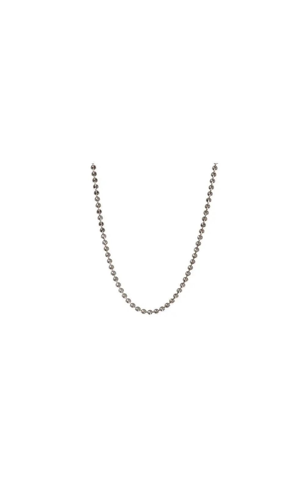 Intricately hand crafted, each bead has been diamond cut and strung on a flexible silver chain. Why not add some sparkle to your look with this stunning necklace. Made from sterling silver, rhodium plated and hallmarked in London.