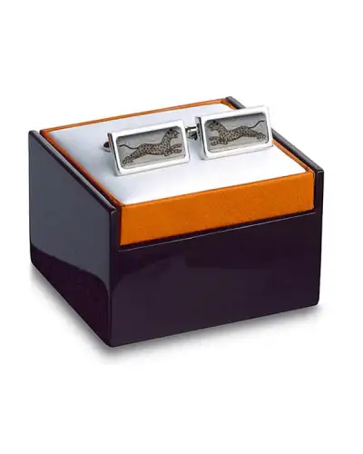 Straight-legged rhodium plated findings with a hinged back Cufflink Face Dimensions: 10mm x 20mm Presented in a flip top box Made in Britain Length: 17 mm Width: 17 mm Wipe Clean Rhodium Plate High Polish Shine