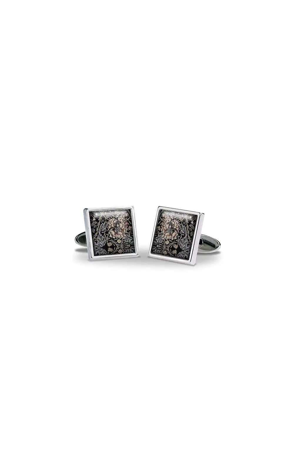 Straight-legged rhodium plated findings with a fixed oval back Cufflink Face Dimensions: 17mm x 17mm Presented in a flip top box Made in Britain Length: 17 mm Width: 17 mm Wipe Clean Rhodium Plate High Polish Shine
