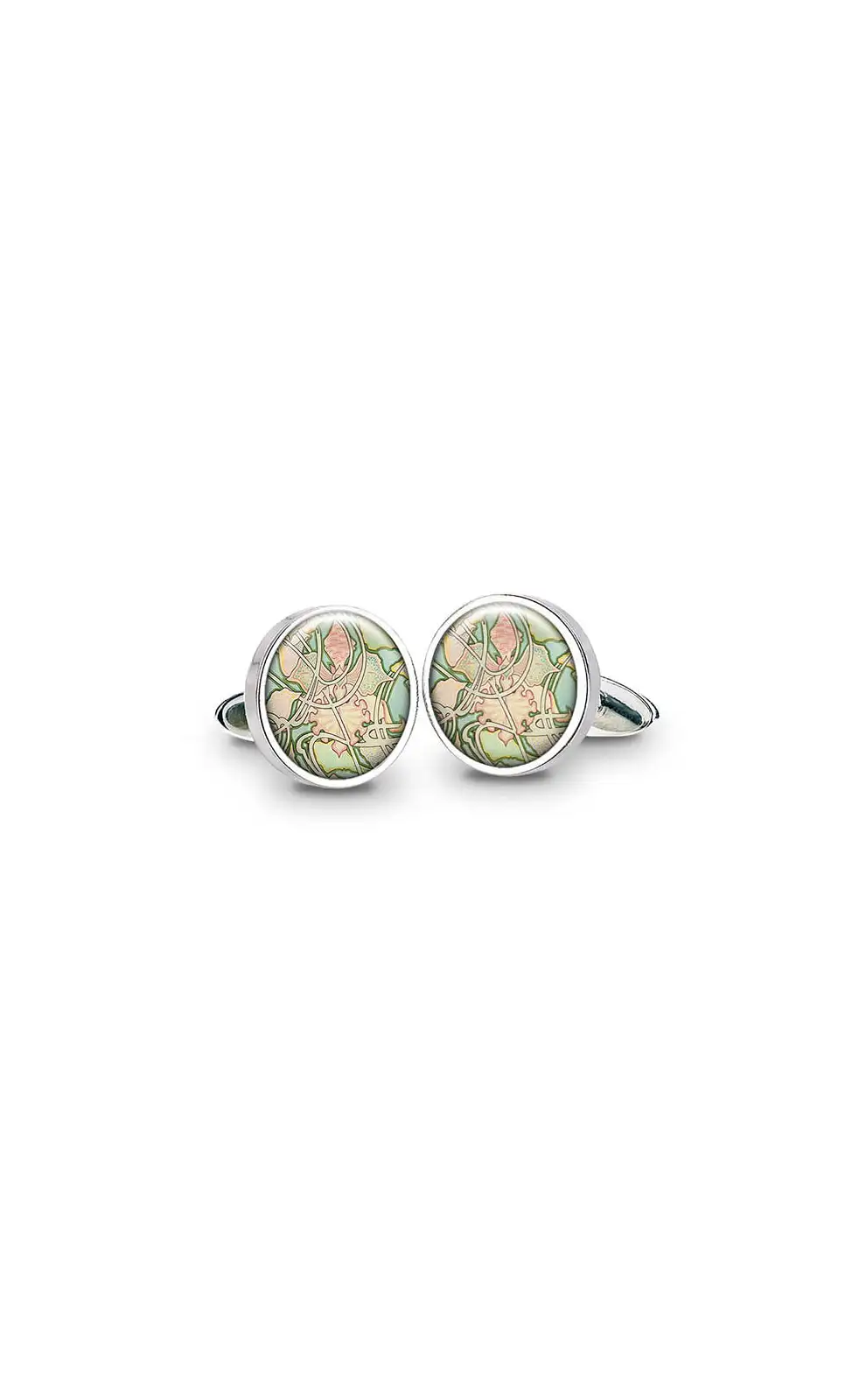Straight-legged rhodium plated findings with a fixed oval back Cufflink Face Dimensions: 17mm diameter Presented in a flip top box Made in Britain Length: 17 mm Width: 17 mm Wipe Clean Rhodium Plate High Polish Shine
