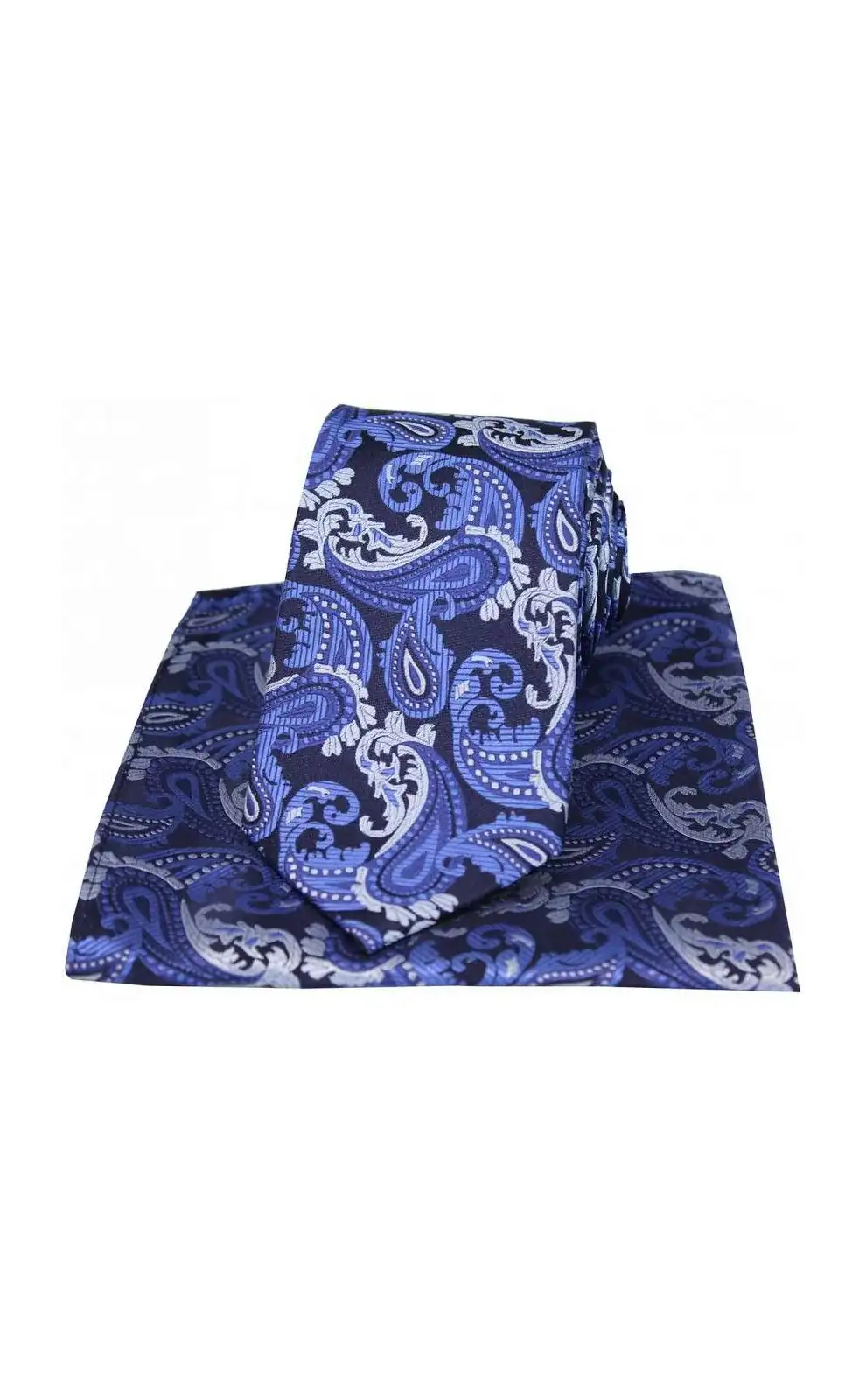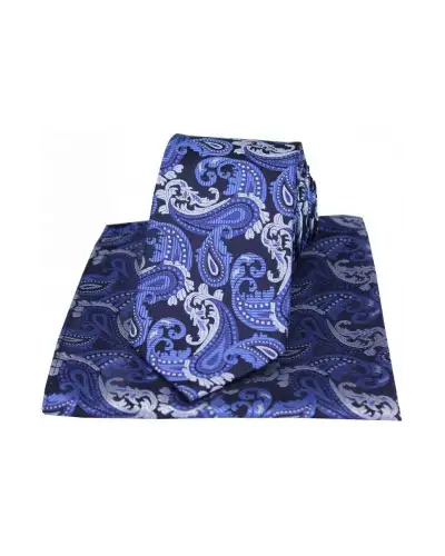 - Blue Textured Paisley Silk Tie and Pocket Square