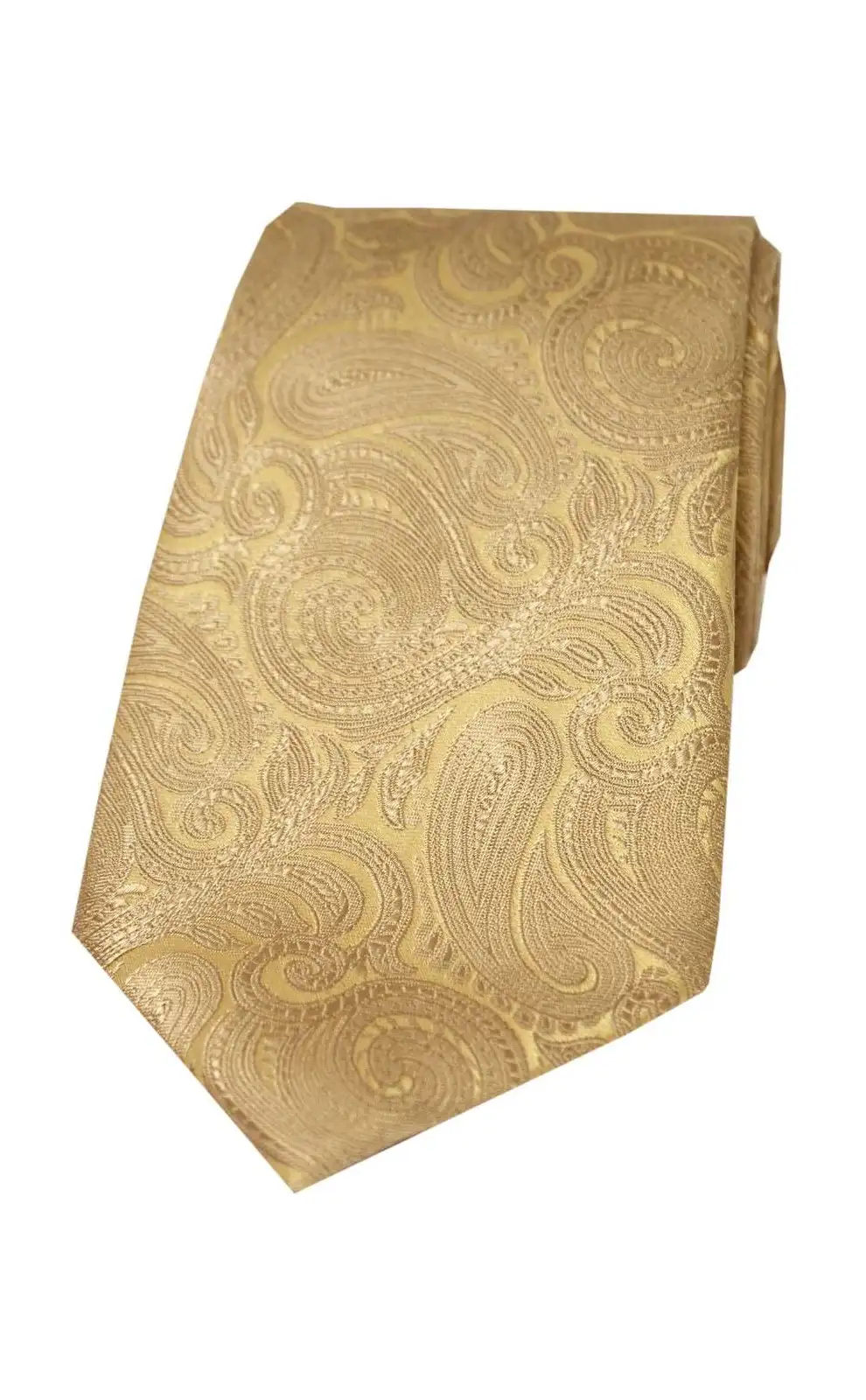 - Soprano Champagne Gold Paisley Silk Tie, Finest Quality Silk Men's Ties.