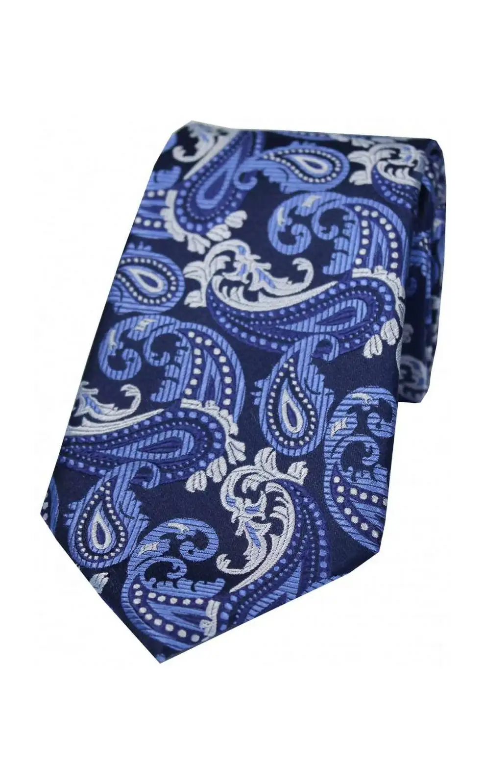 - Soprano Navy Blue and Grey Paisley Silk Tie, Finest Quality Silk Men's Ties.