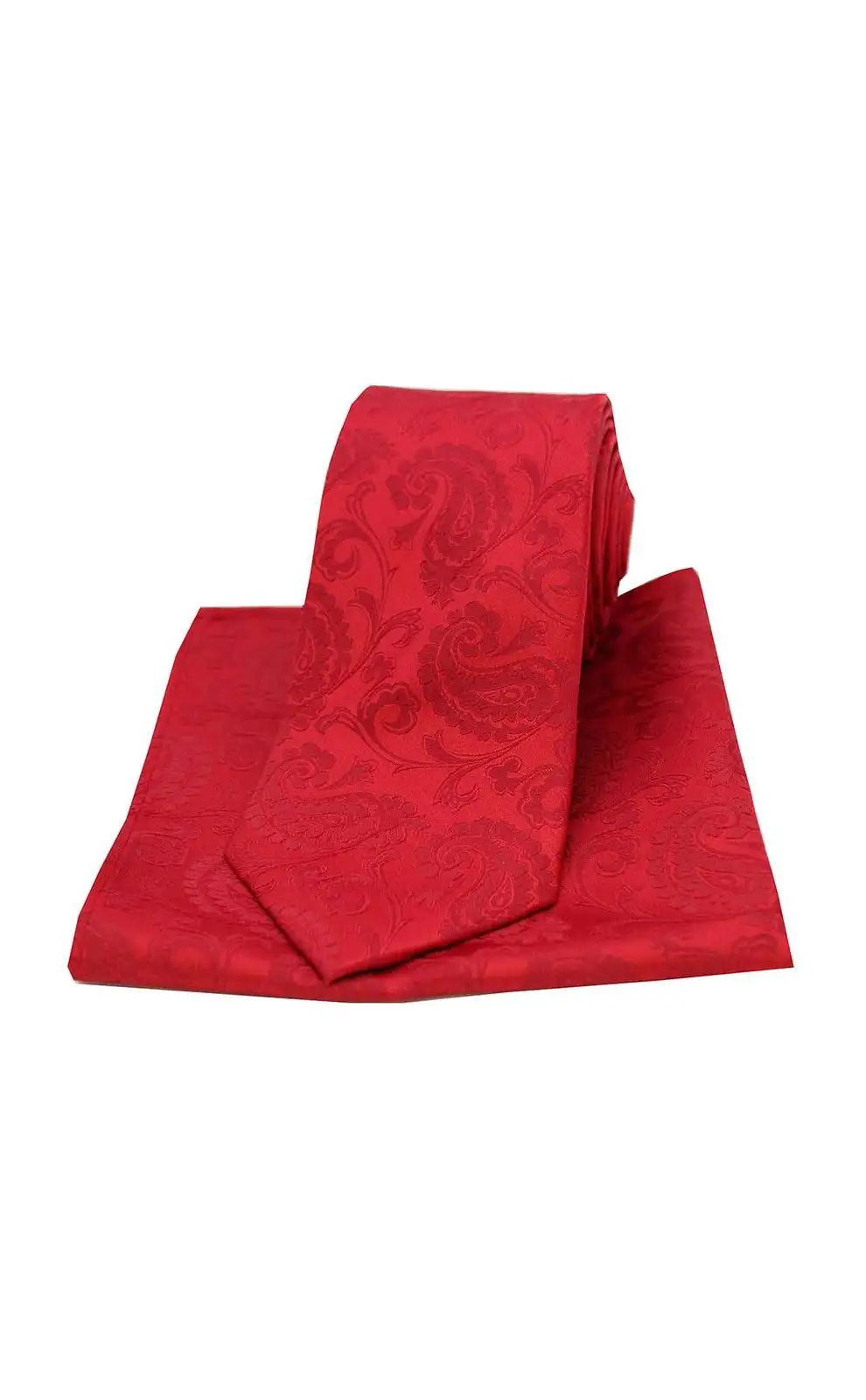 Soprano Red Paisley Woven Silk Tie And Pocket Square-ST-TPS08881