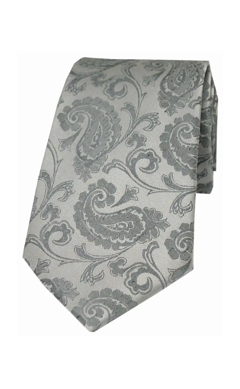 - Soprano Silver Paisley Woven Silk Tie, Finest Quality Silk Men's Ties.