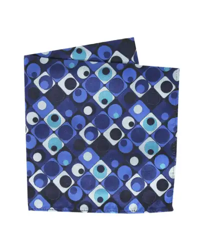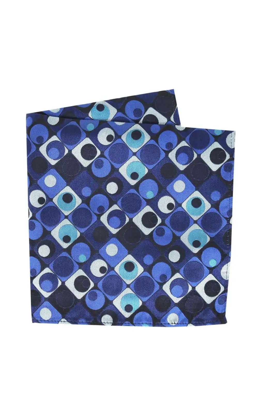 - Posh And Dandy Blue Squares and Circles Silk Pocket Square