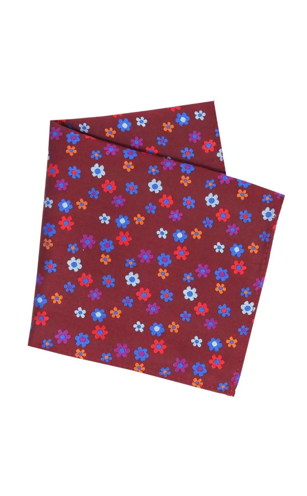 - Posh And Dandy Claret Ground Multi Coloured Flowers Silk Pocket Square
