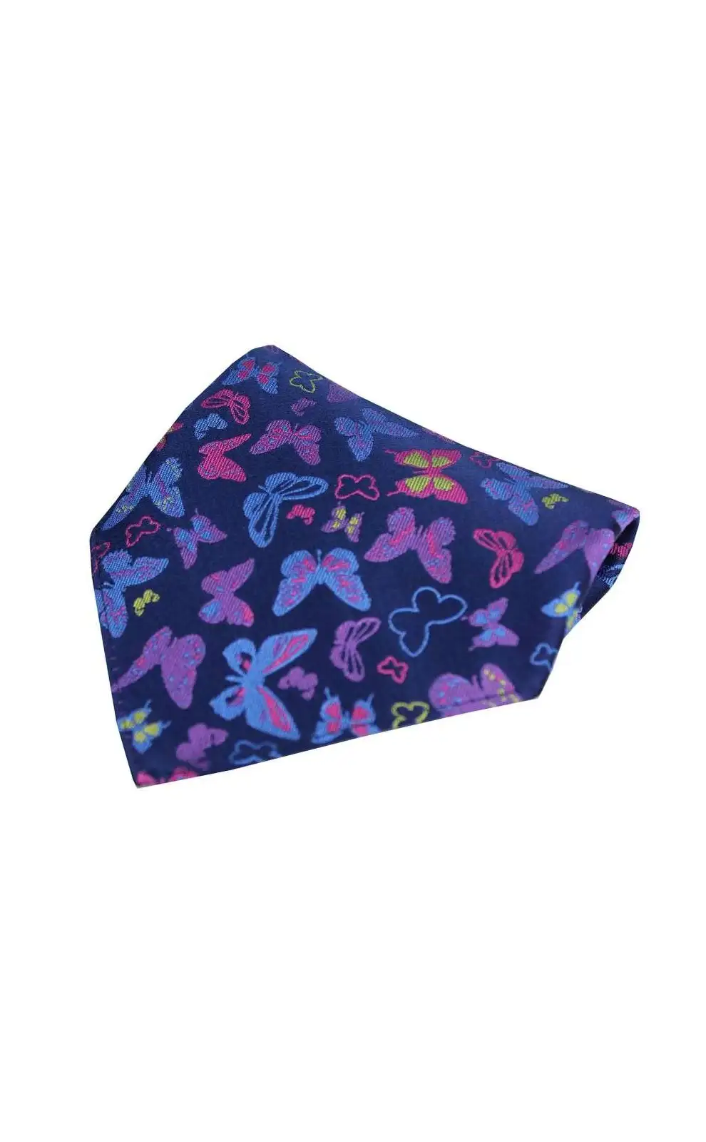 Posh and Dandy Multicoloured Butterflies On Navy Silk Pocket Square