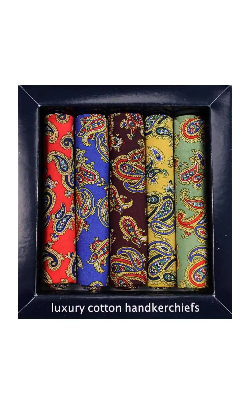 - Soprano 5 Colour Paisley Design Cotton Pocket Square Set