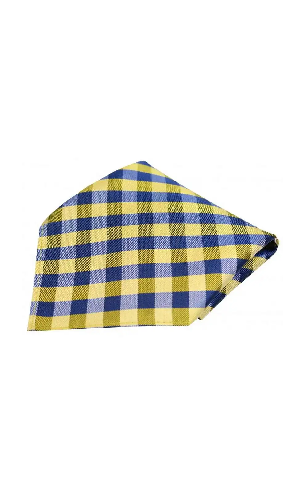 Soprano Blue And Gold Checked Pattern Silk Pocket Square