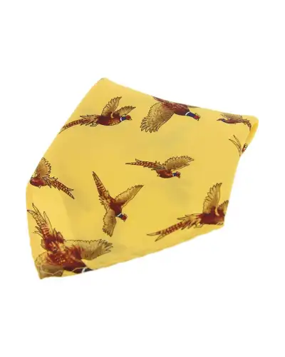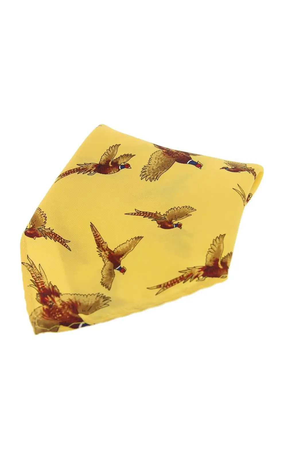 Soprano Gold Flying Pheasants Silk Pocket Square