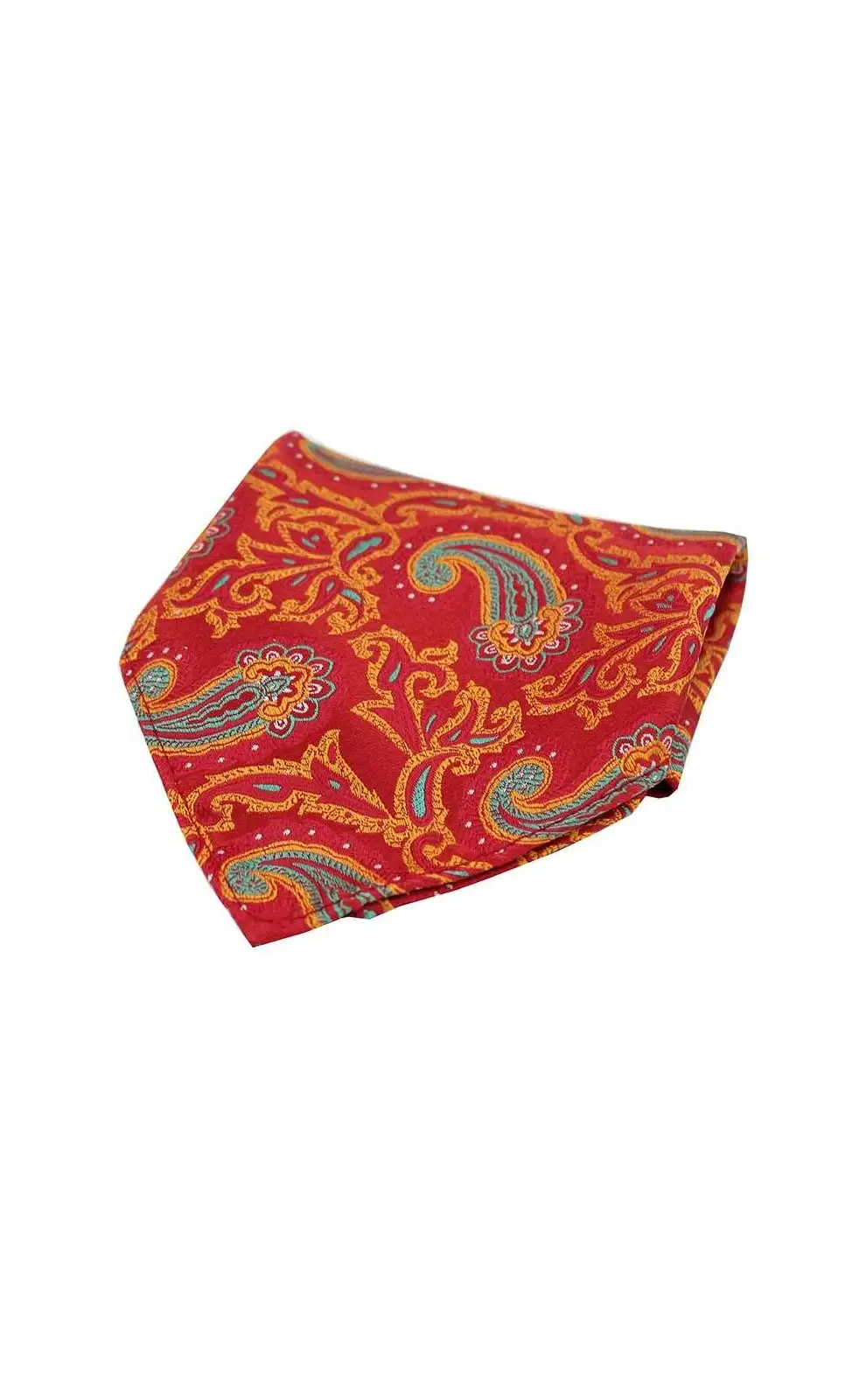 Soprano Large Edwardian Paisley On Red And Orange Ground Silk Pocket Square