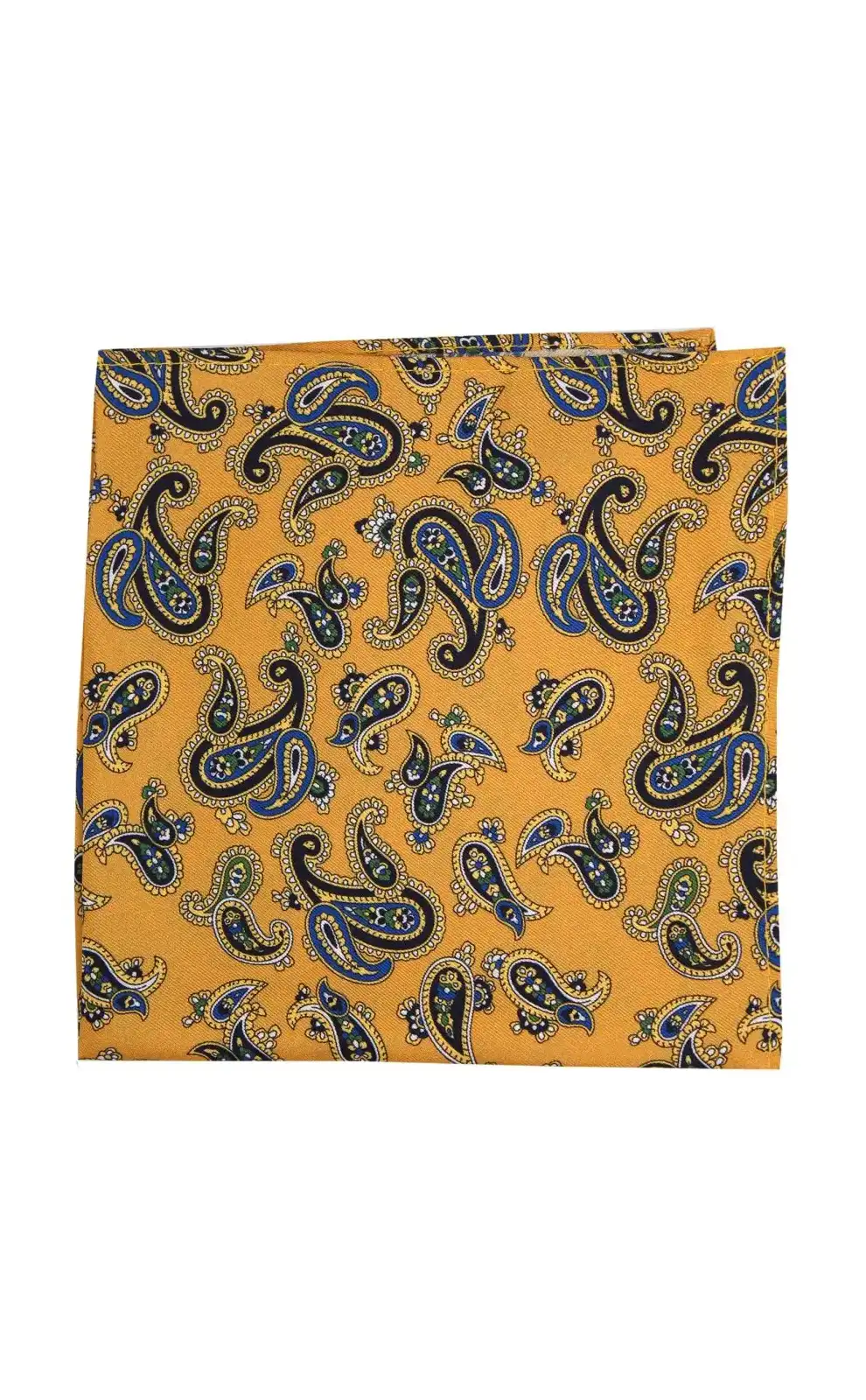 Soprano Mustard Large Paisley Design Silk Pocket Square