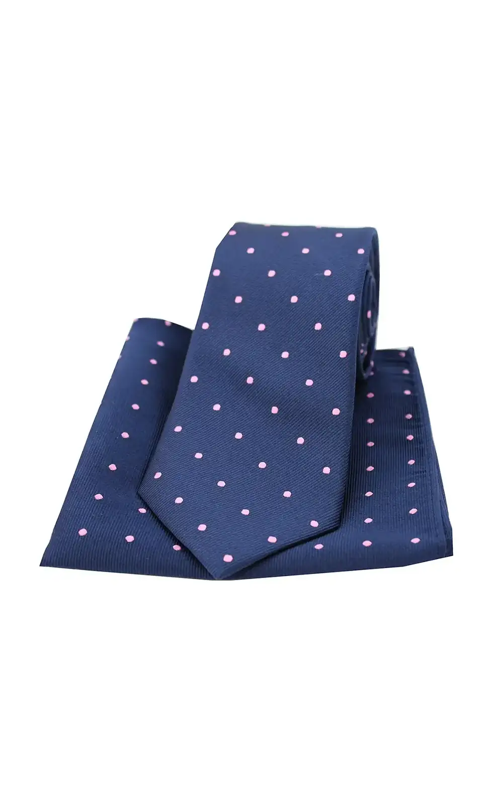 Soprano Navy And Pink Polka Dot Silk Tie And Pocket Square-ST-TPS08922