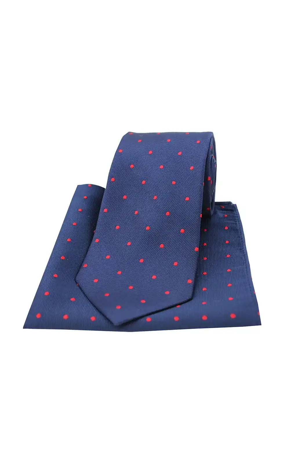 Soprano Navy And Red Polka Dot Silk Tie And Pocket Square