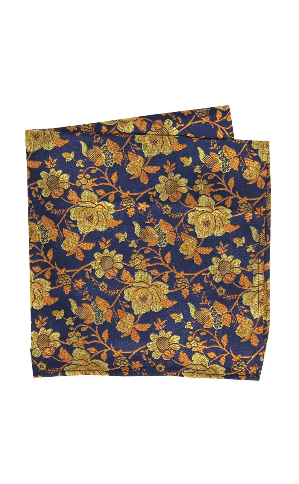 - Soprano Navy Gold Orange Floral Silk Pocket Square