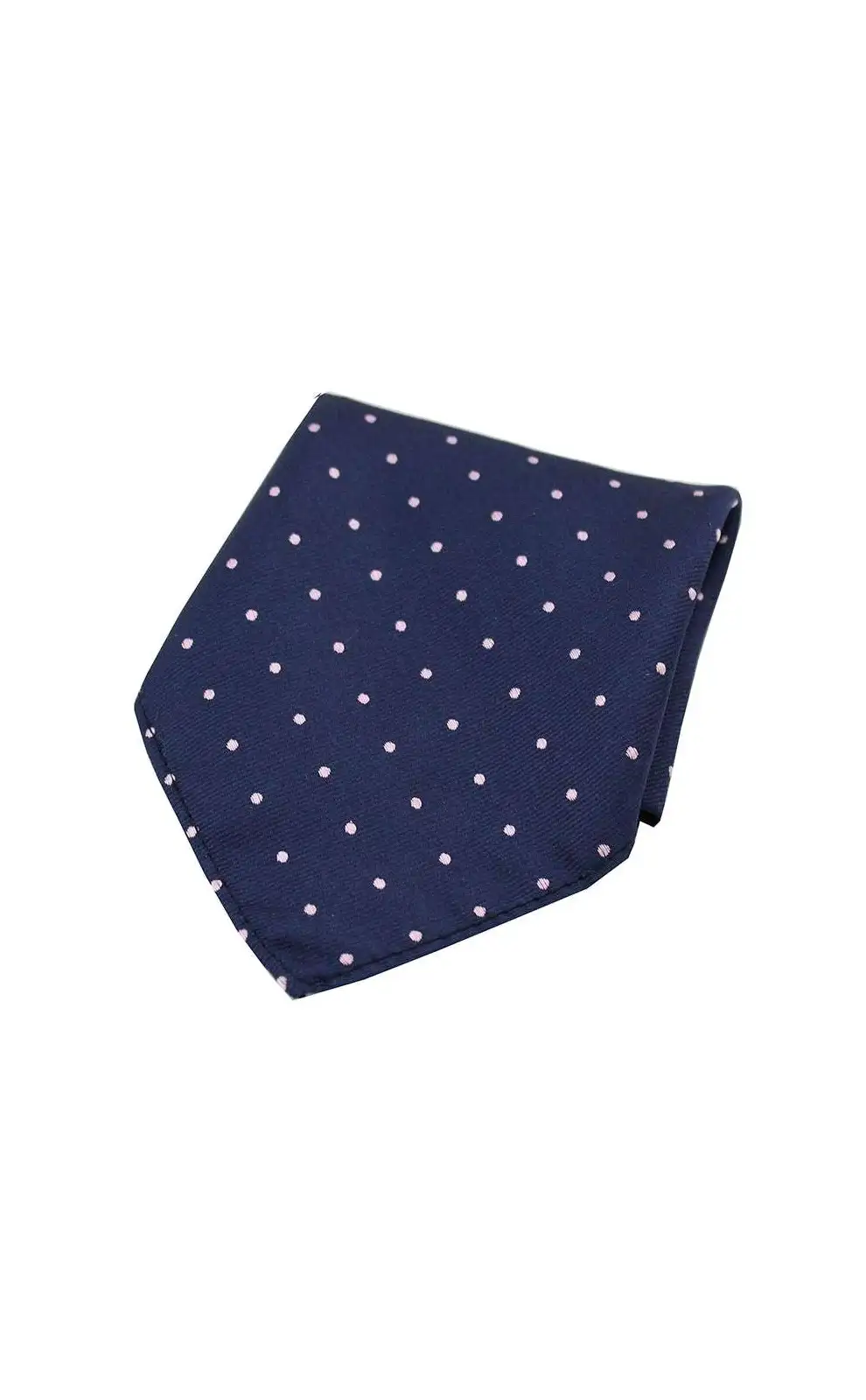 Soprano Pink And Navy Pin Dot Woven Silk Pocket Square