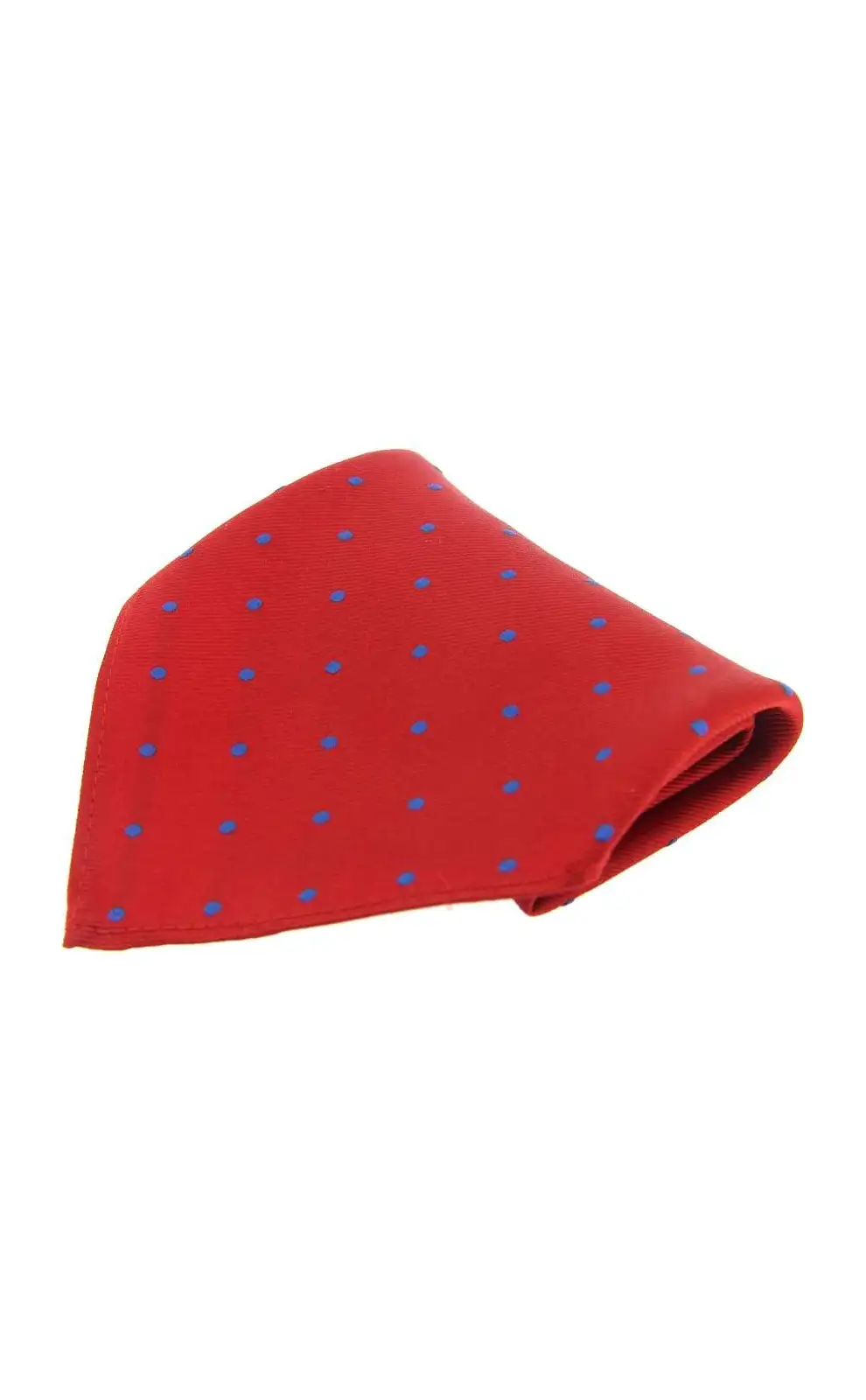 Soprano Red And Blue Polka Dots Mens Silk Pocket Square