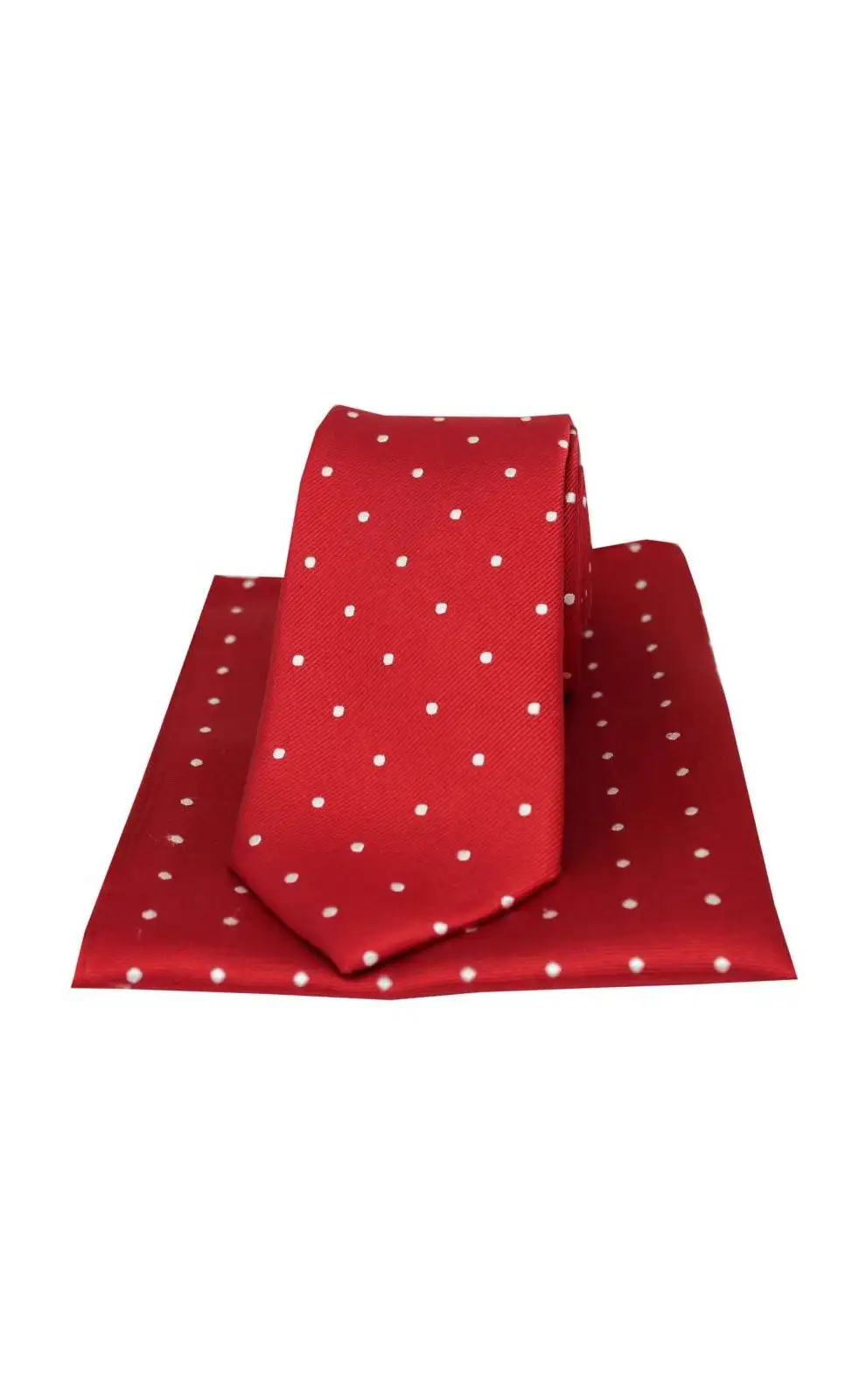 Soprano Red And White Polka Dot Silk Tie And Pocket Square-ST-TPSWS08928