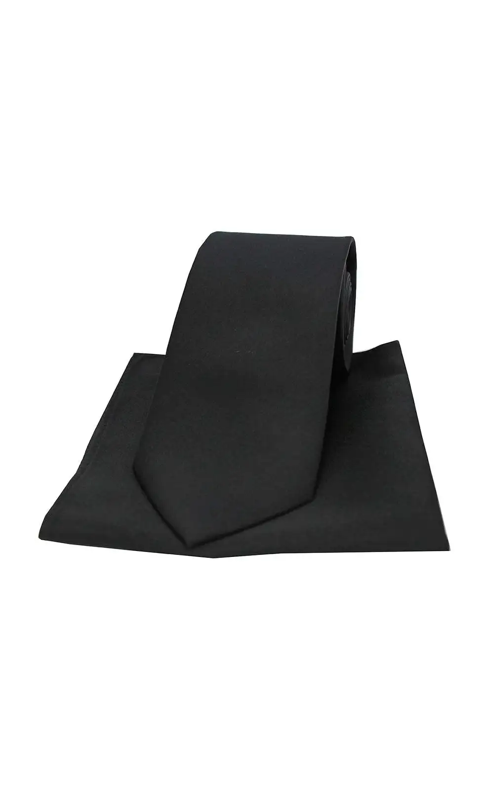 Soprano Satin Black Silk Tie And Pocket Square-ST-TPSWQ-BLACK