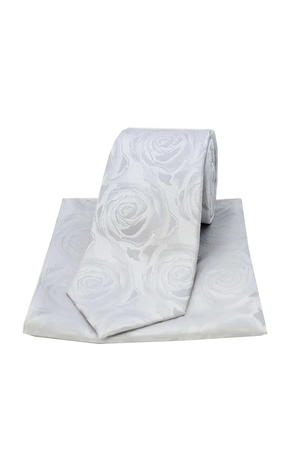 Soprano Silver Rose Wedding Silk Tie And Pocket Square-ST-TPSWE006