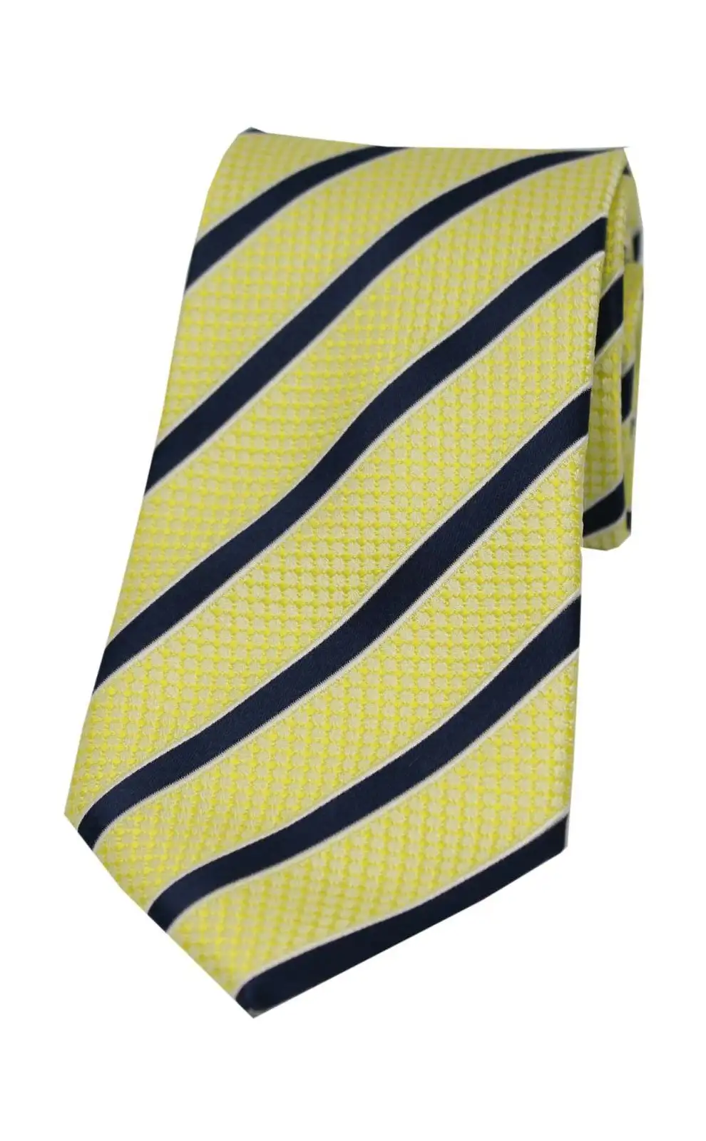 - Soprano Blue Striped Polyester Tie On Lemon Yellow Ground, Finest Quality Polyester Ties.