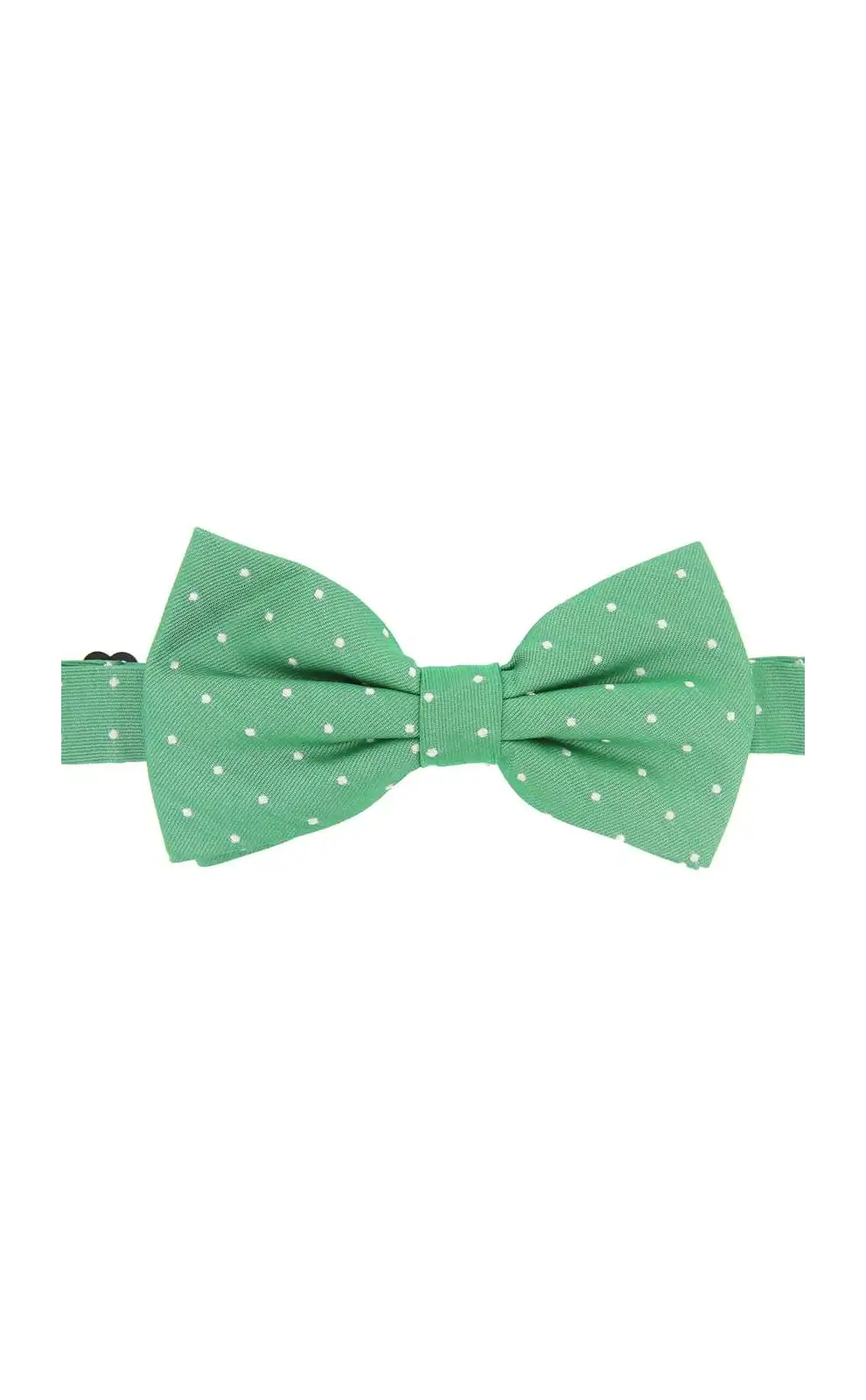 Soprano Cream Pin Dot Fashionable Woven Silk Bow Tie On Green Ground