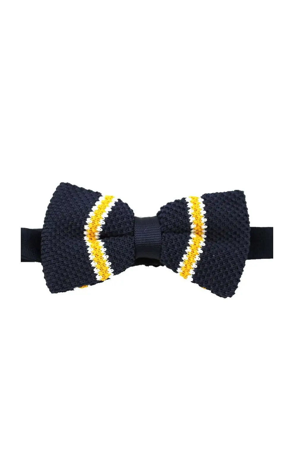 Soprano Pre-Tied Navy Yellow White Striped Knitted Polyester Bow Tie