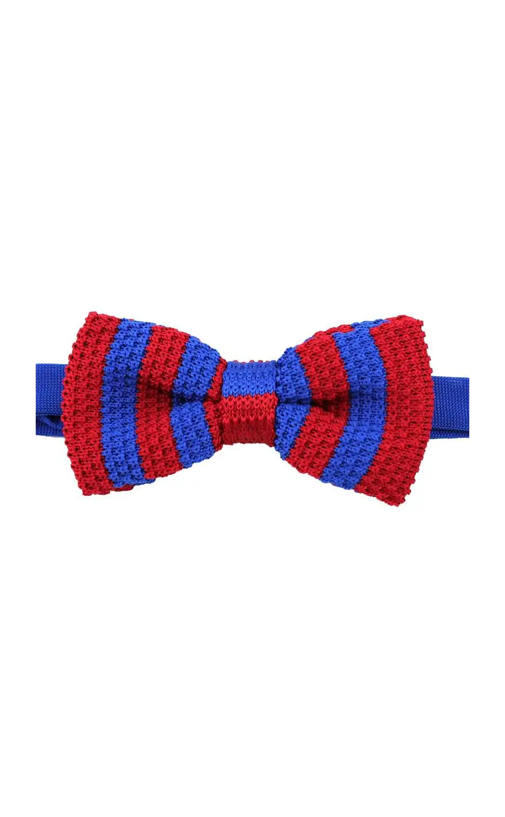 Soprano Pre-Tied Royal Blue And Red Striped Knitted Polyester Bow Tie