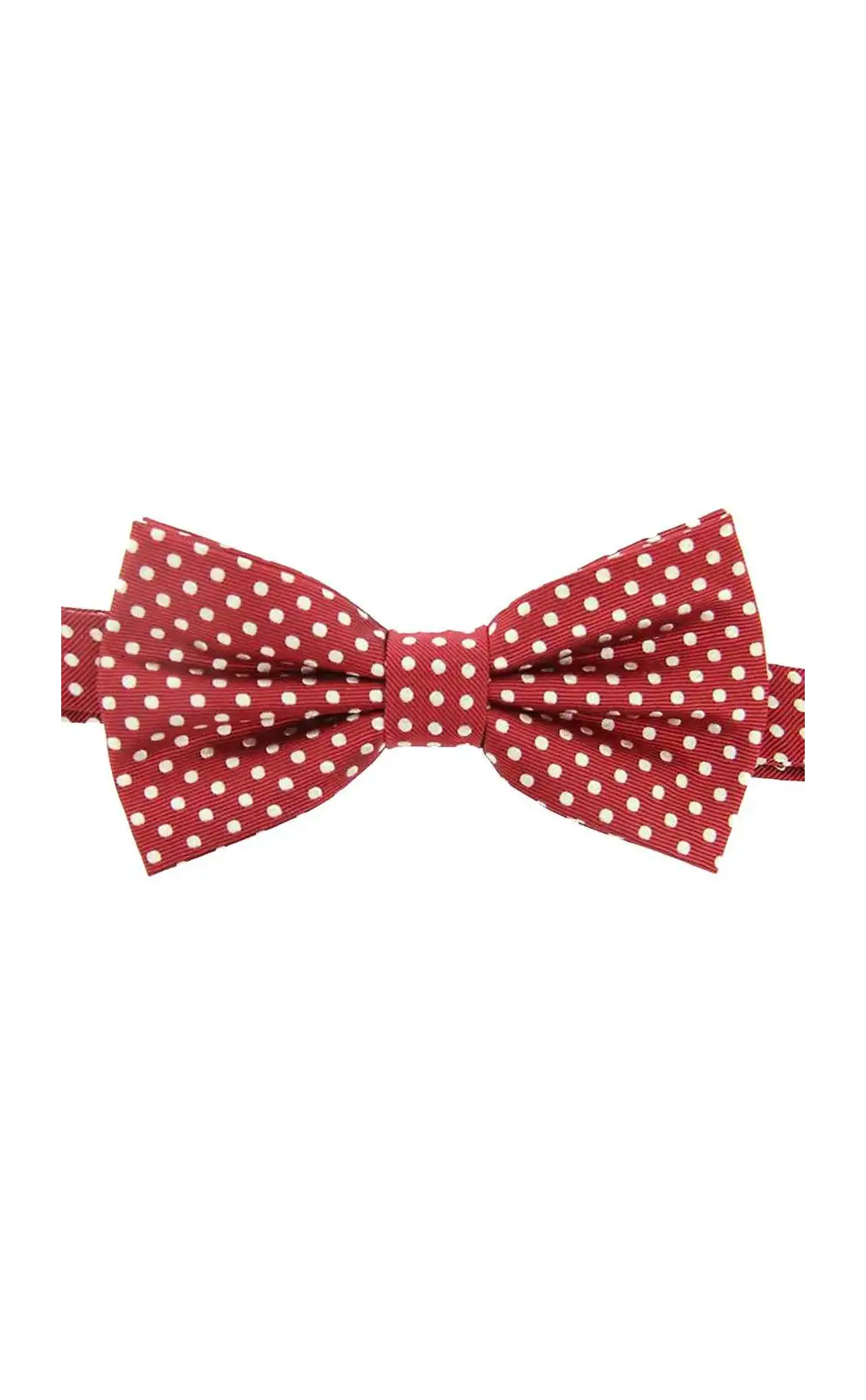 Soprano White Polka Dot Woven Silk Bow Tie On Red Ground