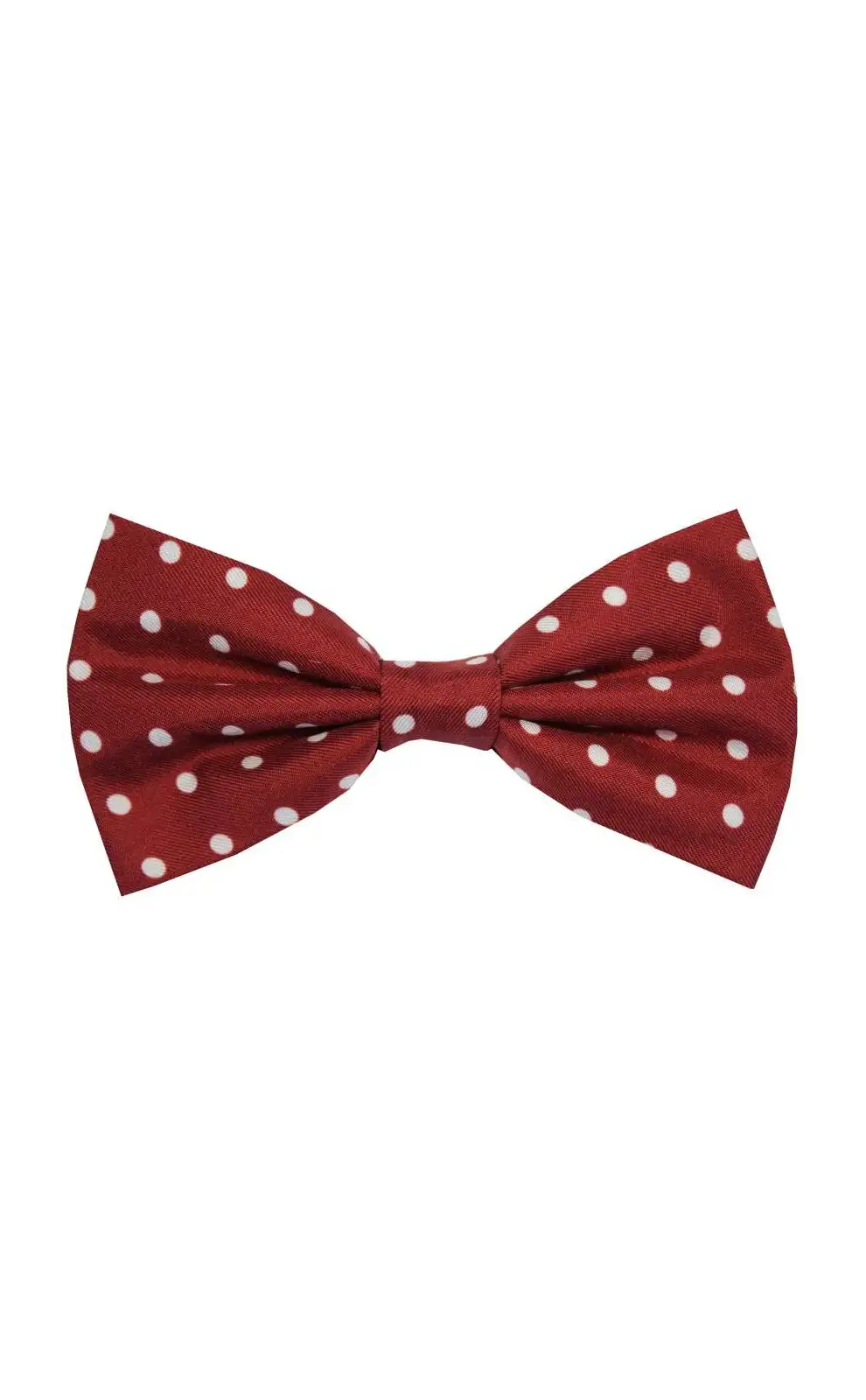 Soprano Wine And White Polka Dot Silk Pre Tied Bow Tie